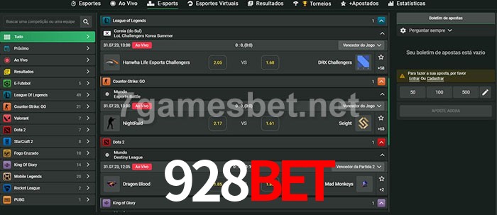 O 928bet oferece uma grande seleção de opções de apostas em e-sports com probabilidades competitivas